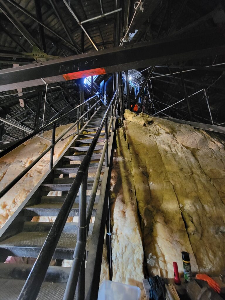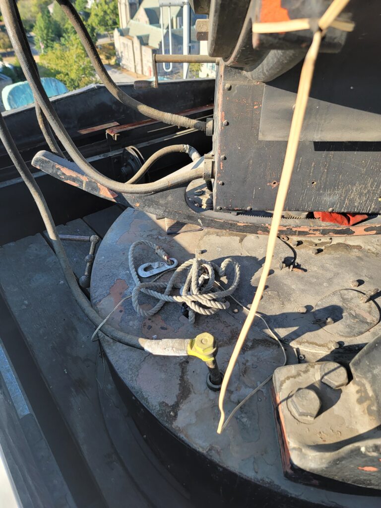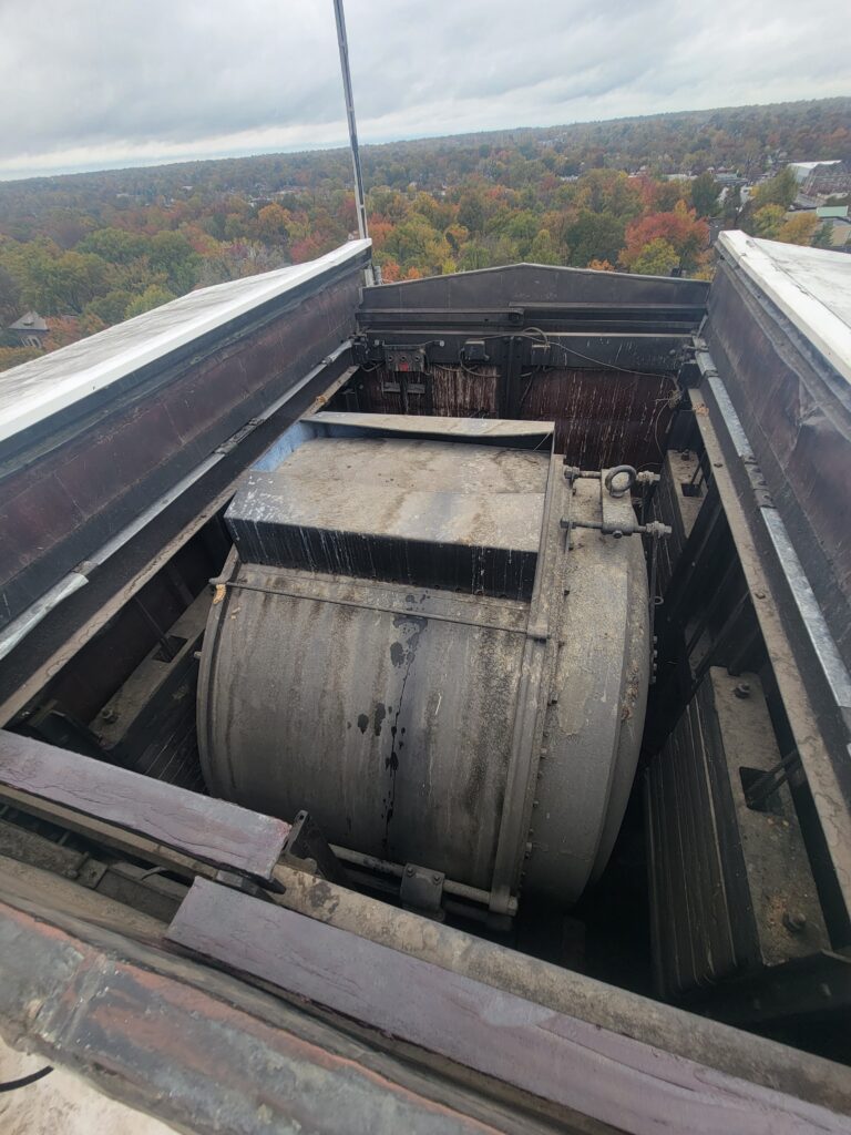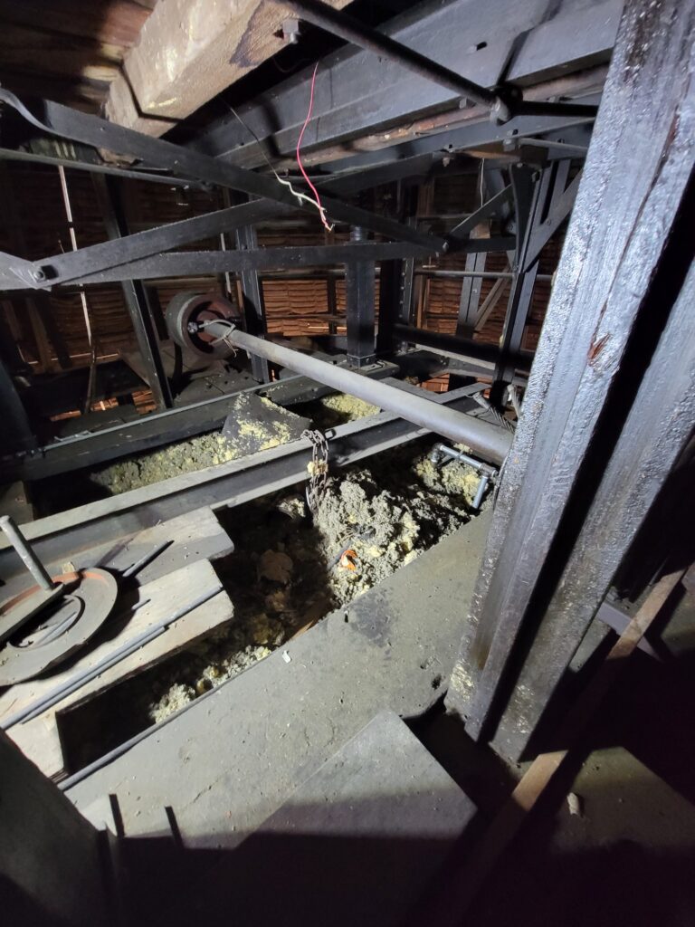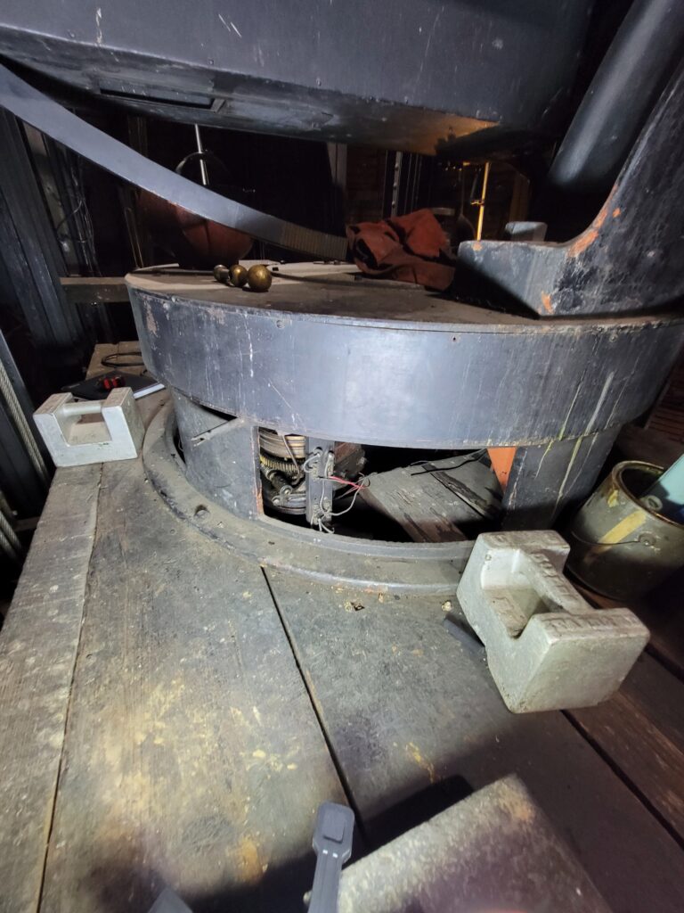 4. The modernization/improvement of the elevator function. The elevator raises and lowers via the motor and counter weight system. In lowering the breakers will trip that control the elevator operation. This is resolved by stopping and then restarting the elevator. It may be that the elevator is encountering resistance coming down or the piston that sets the breakers is bad. The elevator rails have been greased to attempt to resolve this and new oil added to the piston (with the help of the Facilities Manager of University City) to no avail.